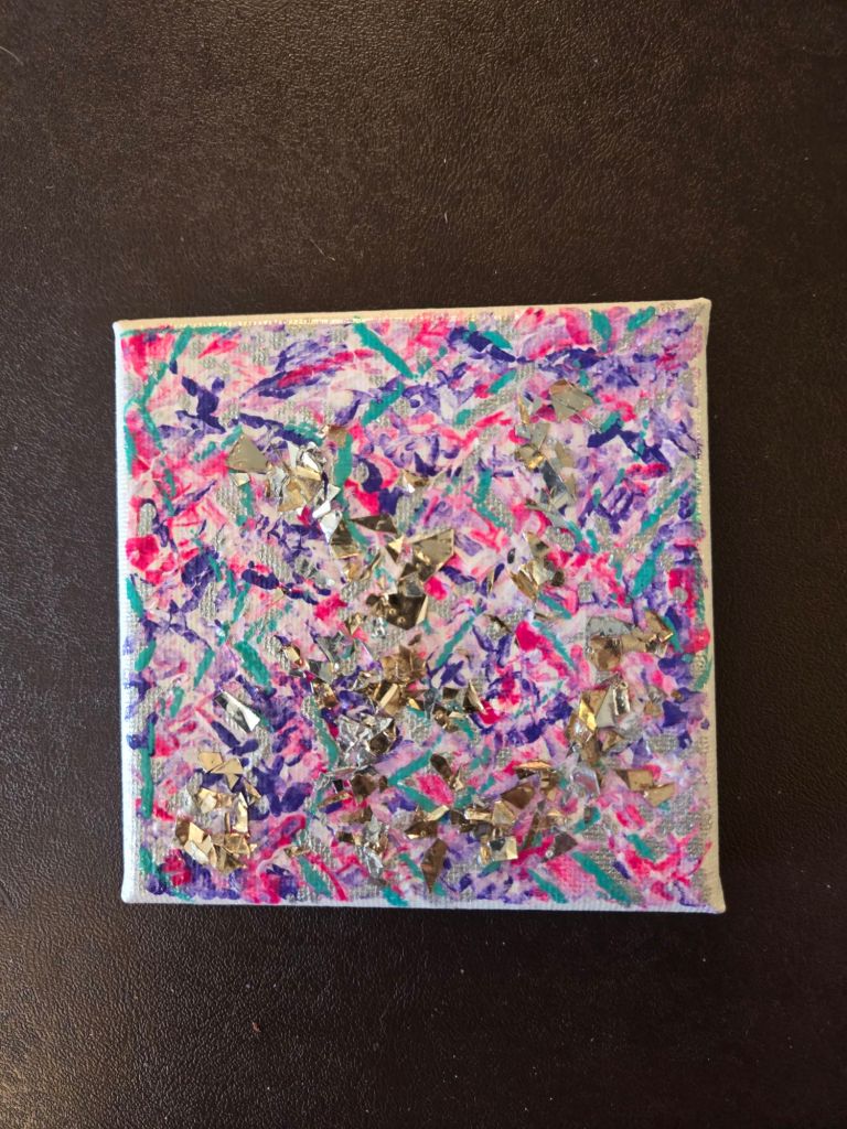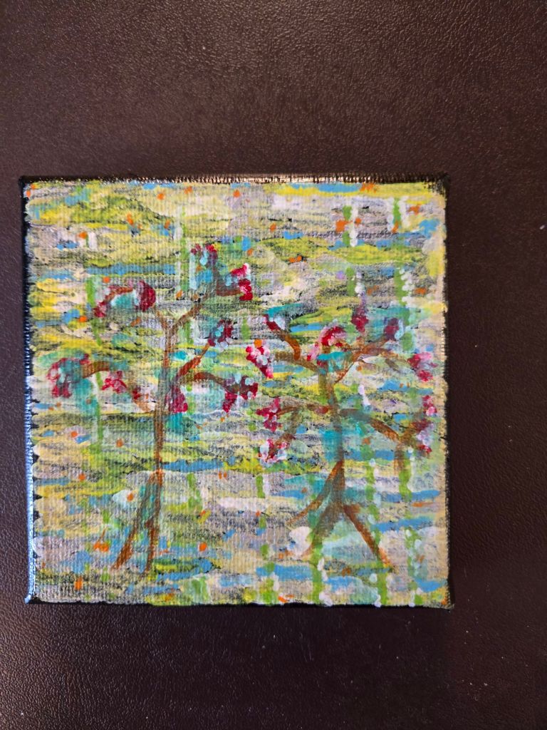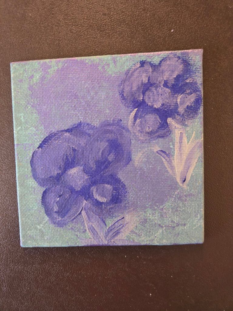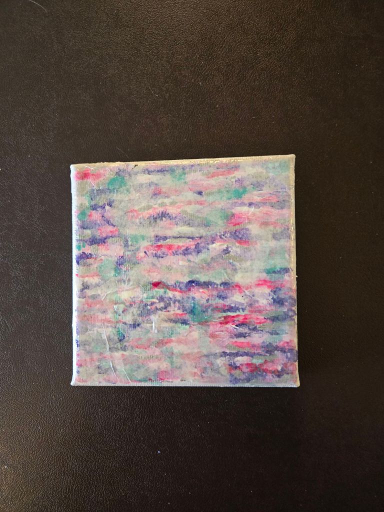 Burnt Wing Beauty 11×14 $40Mexico 8×10 $30 SOLDCity Pop 16×12 $45Aunt Pink 10 inch $30The Wow Factor of Ocean Trash 20×16 $50 SOLDA Patchwork Blue 12×16 $45Cotton Candy Land 8×10 $30Golden Rod 12×16 $45Sunrise,Sunset 20×16 $50Cloud Study 12×16 $45Orange Julius 11×14 $40BubbleVerse 12×12 $35 SOLDStolen Dreams 11×14 $40Iris at Night-4×4 $15 includes display easelMorning Violets 4×4 $15 includes display easelGeorgia 4×4 $15 includes display easel SOLDStacks 4×4 $15 includes display easelGeorgia 2 4×4 $15 includes display easel SOLDRainy Day 4×4 $15 includes display easel Rainy Day 2 4×4 $15 includes display easelBlueberry Pie 4×4 $15 includes display easelMardi Gras 4×4 $15 includes display easel SOLD Mardi Gras Deux 4×4 $15 includes display easel