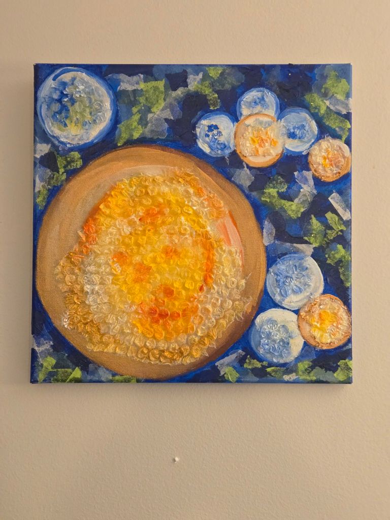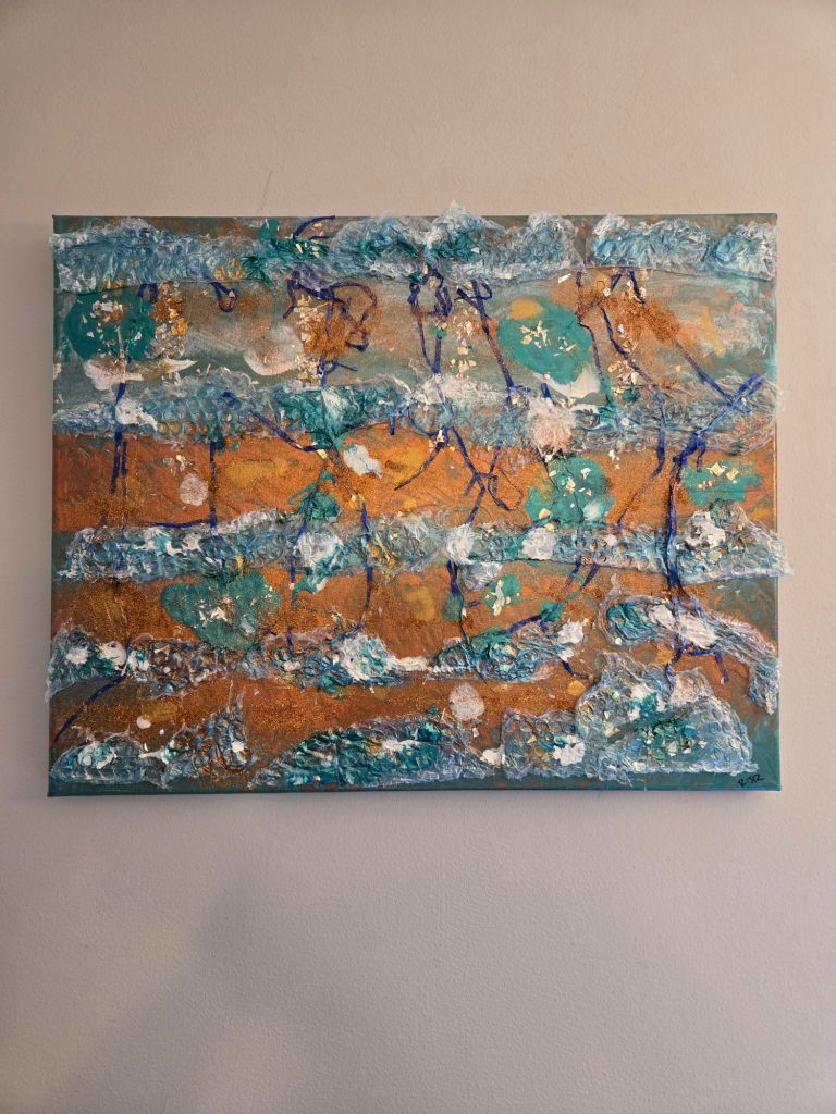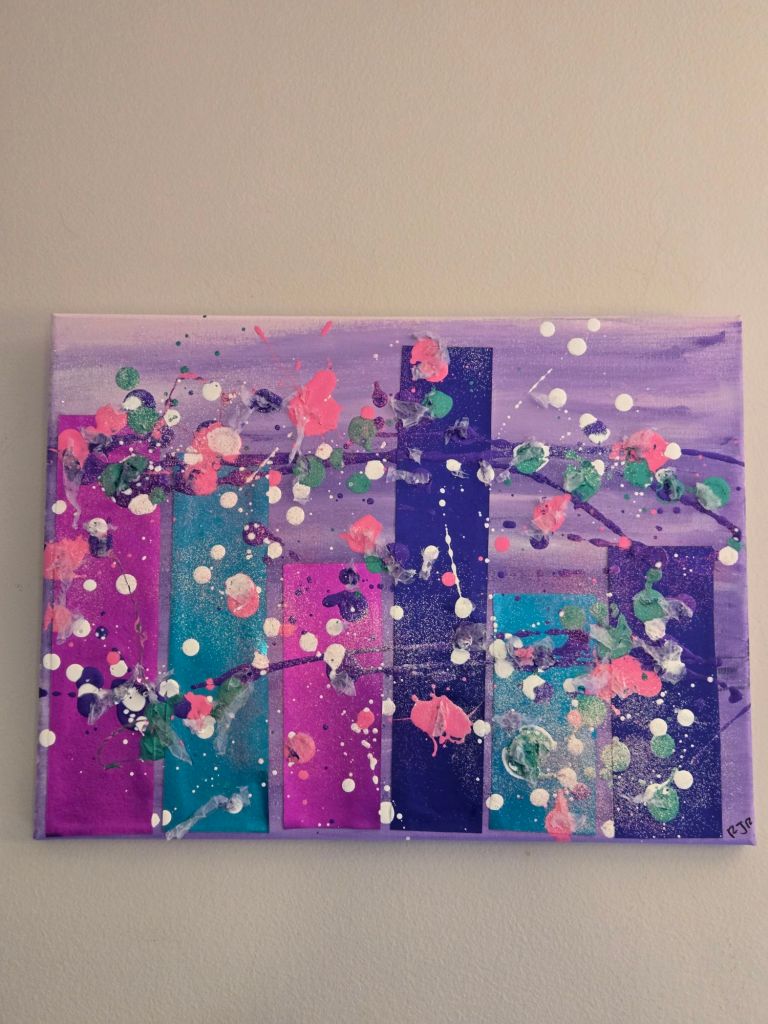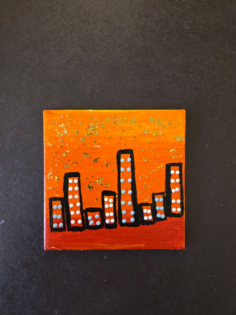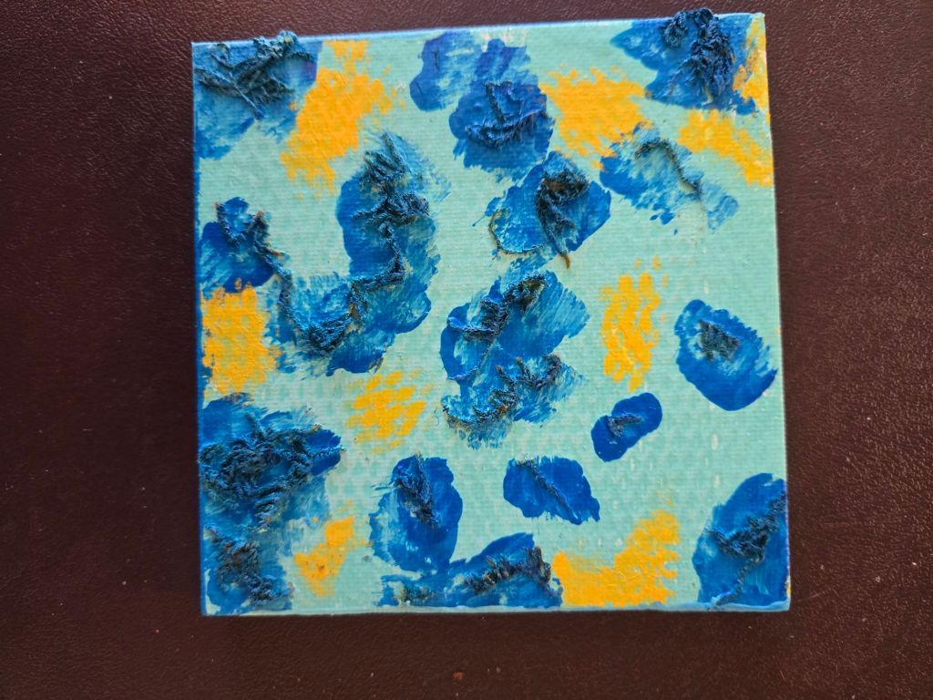 Burnt Wing Beauty 11×14 $40Mexico 8×10 $30 SOLDCity Pop 16×12 $45Aunt Pink 10 inch $30The Wow Factor of Ocean Trash 20×16 $50 SOLDA Patchwork Blue 12×16 $45Cotton Candy Land 8×10 $30Golden Rod 12×16 $45Sunrise,Sunset 20×16 $50Cloud Study 12×16 $45Orange Julius 11×14 $40BubbleVerse 12×12 $35 SOLDStolen Dreams 11×14 $40Iris at Night-4×4 $15 includes display easelMorning Violets 4×4 $15 includes display easelGeorgia 4×4 $15 includes display easel SOLDStacks 4×4 $15 includes display easelGeorgia 2 4×4 $15 includes display easel SOLDRainy Day 4×4 $15 includes display easel Rainy Day 2 4×4 $15 includes display easelBlueberry Pie 4×4 $15 includes display easelMardi Gras 4×4 $15 includes display easel SOLD Mardi Gras Deux 4×4 $15 includes display easel